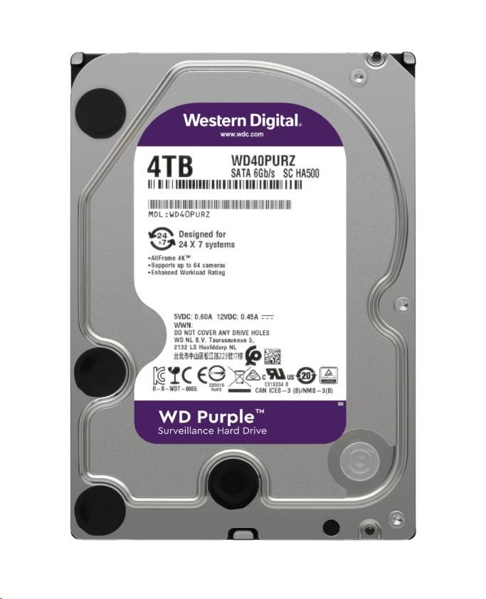 WD PURPLE WD43PURZ 4TB, SATA III 3.5", 256MB, 175MB/s, Low Noise, CMRPoužití disku:Pro PC; Formát:3.5"; Rozhraní:interní Serial ATA III; HDD Kapacita (GB):4000; Typ disku:HDD externí; Velikost bufferu (v MB):256.