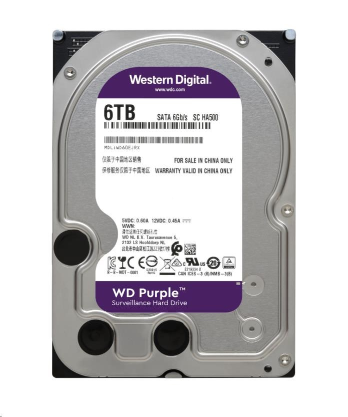 WD PURPLE WD64PURZ 6TB, SATA III 3.5", 256MB, 175MB/s, Low Noise, CMRPoužití disku:Pro PC; Formát:3.5"; Rozhraní:interní Serial ATA III; HDD Kapacita (GB):6000; Typ disku:HDD externí; Velikost bufferu (v MB):256.