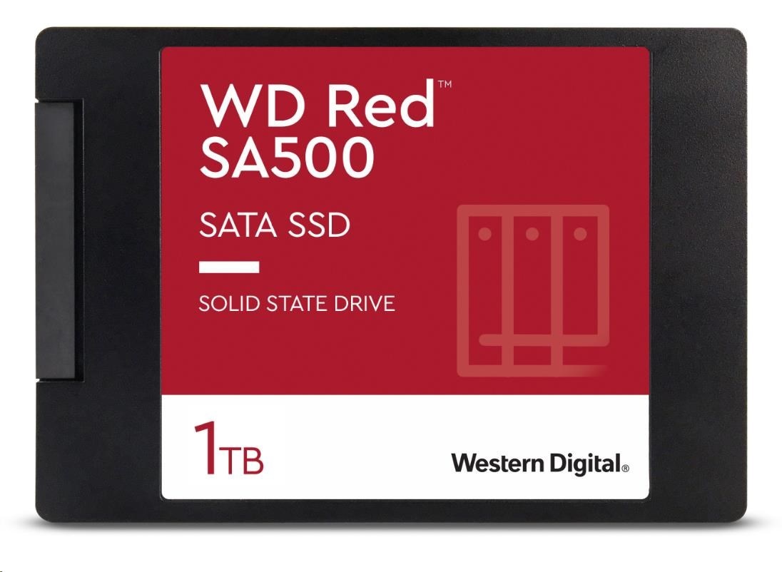 WD RED SSD 3D NAND WDS100T1R0A 1TB SATA/600, (R:560, W:530MB/s), 2.5"Použití disku:Pro NAS; Formát:2.5"; Rozhraní:interní Serial ATA III; SSD Kapacita (GB):1000; Typ disku:SSD; Velikost bufferu (v MB):nespecifikováno; Rychlost čtení MB/s:550MB/s a víc; Rychlost zápisu MB/s:450MB/s a víc; Typ paměti SSD:3D; Životnost zápisu SSD v TB:Min. 600 TBW.