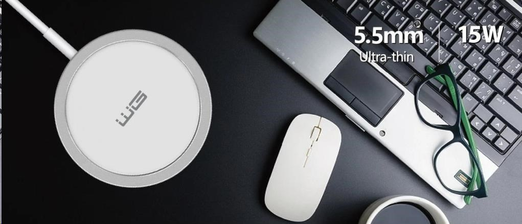 WG - Bezdrátová nabíječka FAST MAGNET 15W, kulatá, bílá