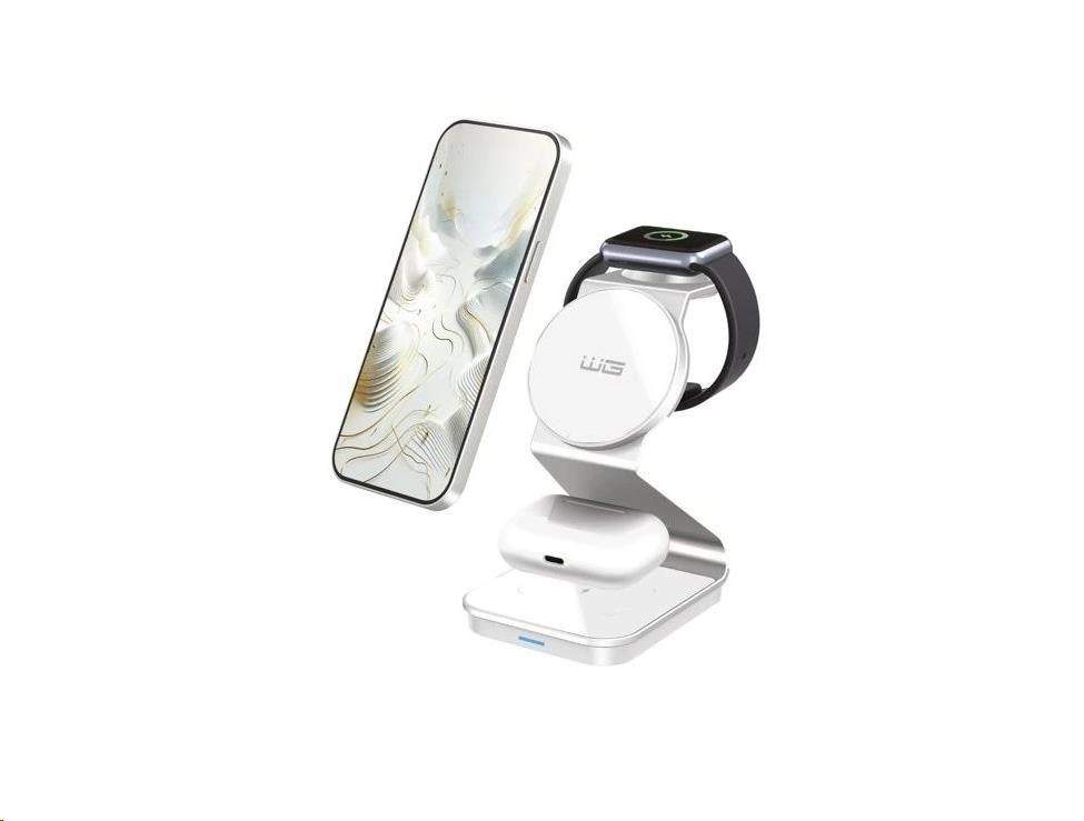 WG - Bezdrátová nabíječka WG37, 3v1 FAST MAGNET, 15W+3W+3W, bílá