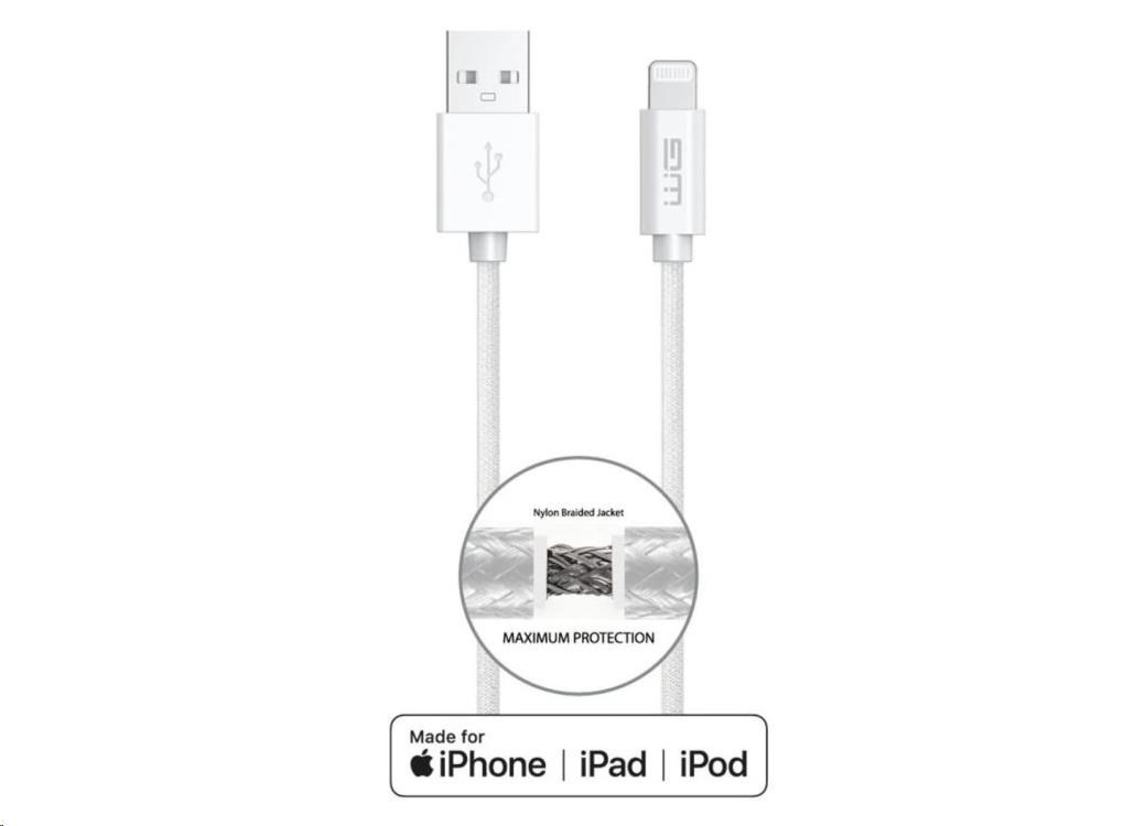 WG - Datový kabel Lightning MFI na USB-A, 1 metr, 2,4A , bíláSpecifikace kabelu / redukce:USB kabel; Input:USB; Output:Lightning USB.
