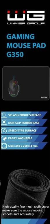 WG - Herní podložka pod myš WG3 / 350x250x3mm / blackVelikost podložky:Střední; Provedení podložky:Plastová.