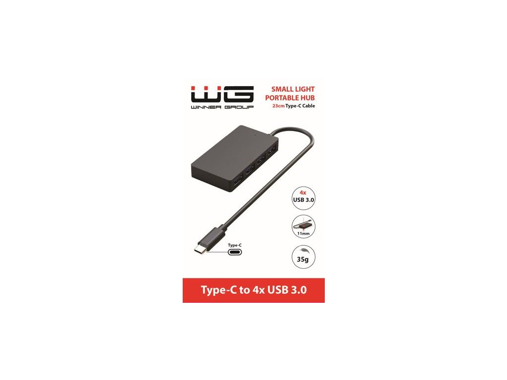 WG - HUB Type-C na 4x USB-A, USB 3.0, 5Gbps, černáDruh IO zařízení:USB hub nebo switch; Provedení:Externí.