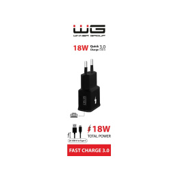 WG - Síťová nabíječka 1x USB-A, Quick Charge 3.0, 5V-9V-12V, + kabel USB-A na Type-C, černáZařízení:Mobil, Tablet; Druh příslušenství:Nabíječky.