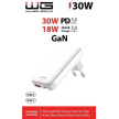 WG - Síťová nabíječka GaN 2x USB, 1x USB-C 30W + 1x USB-A 18W, white