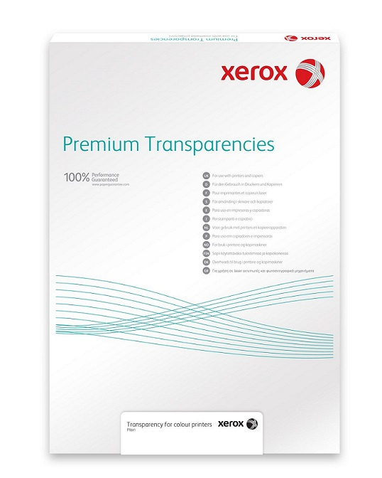 Xerox Papír Transparentní fólie - Transparency 100m A4 - podložený papír ( 100 listů, A4) balení v krabici: x, váha:1,298 kg.