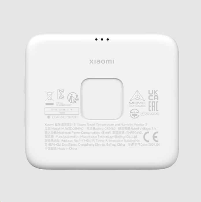 - Obsah balení: 1× chytrý monitor teploty a vlhkosti Xiaomi 3, 1× stojánek, 1× řešení pro upevnění na stěnu, 1× uživatelská příručka, 1× informační karta pro synchronizaci času, 1× záruční list