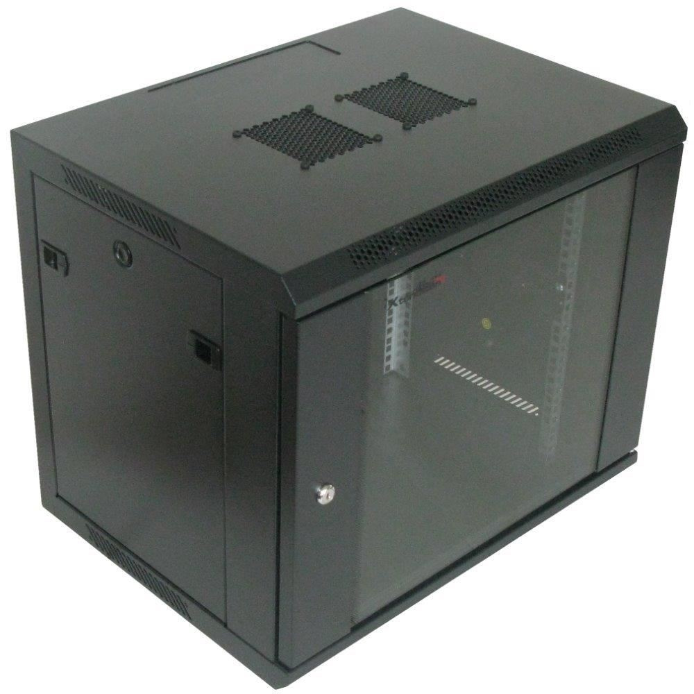 XtendLan 19" nástěnný rozvaděč 9U 600x600, nosnost 60 kg, skleněné kouřové dveře, rozložený, černý