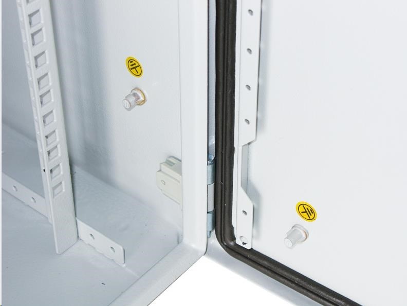 Venkovní nástěnný rozvaděč vyrobený z válcované oceli o tloušťce 1,5 mm.Třívrstvá povrchová úprava. Provedení: dveře - plné, otevíratelné o 110°, 3-bodový zámek, zaměnitelný směr otevírání, těsnění z pěnového polyuretanu zádní kryt - plný boční kryt - plný horní kryt - plný