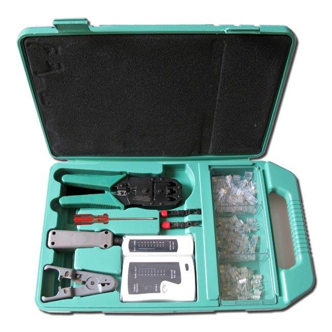 Sada obsahuje: - kleště krimpovací pro konektory RJ10, RJ11, RJ12, RJ45, DEC s odizolovávačem - narážeč pro blok 110 + náhradní břity - stripovací nástroj UTP/STP - tester UTP/STP kabelů RJ11/RJ12/RJ45, loopback - křížový šroubovák - 20x konektor RJ-45 - 20x konektor RJ-12 - 20x konektor RJ-11.Parametry produktu