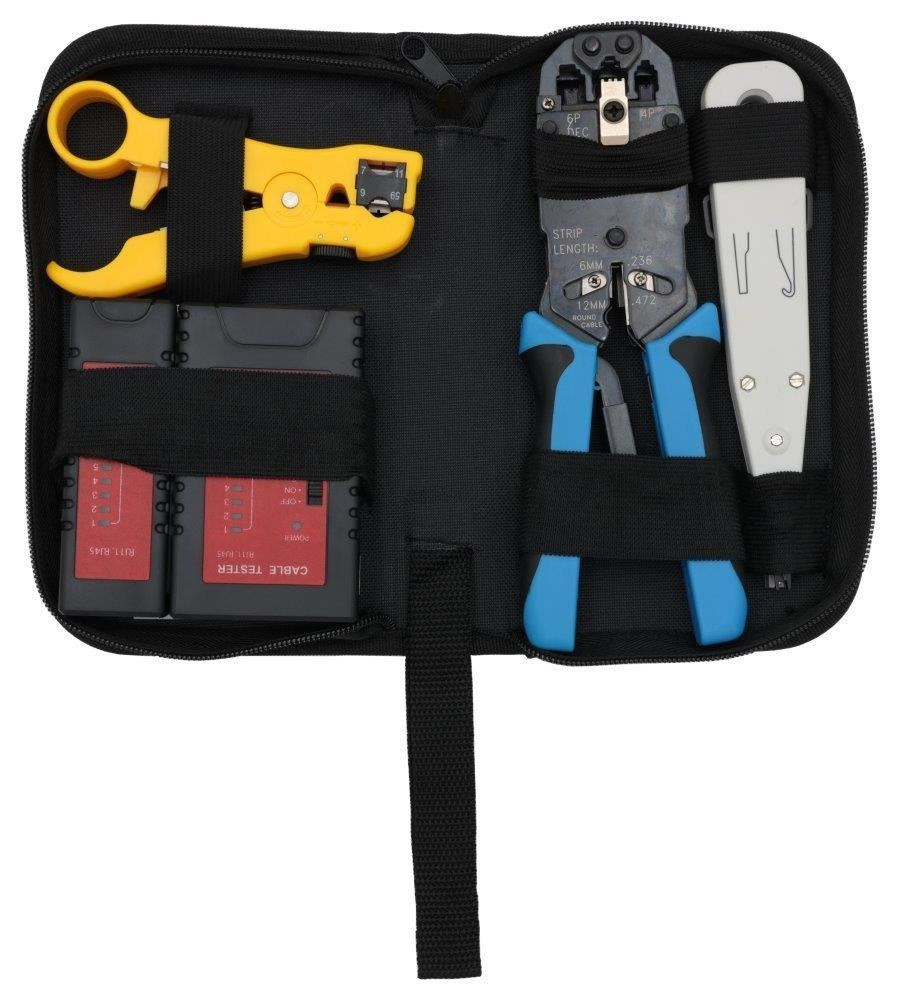 XtendLan sada nářadí v textilním pouzdře pro strukturované sítě (kleště, narážeč, stripovací nástroj, tester)