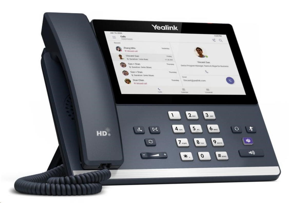 Yealink MP56 poskytuje bezproblémově Microsoft Teams služby na stolní telefonním zařízení a je určen pro pracovníky v kanceláři. MP56 má 7palcovou kapacitní dotykovou obrazovku pro bohatou vizuální prezentaci a snadnou navigaci v nabídce, ale také vlastní uživatelské rozhraní přizpůsobené pro Teams, vyhrazené tlačítko Teams, klíčové volací funkce a vyšší rychlost odezvy. To vše poskytuje uživatelům pohodlnou Teams komunikaci a efektivní kancelářské prostředí.