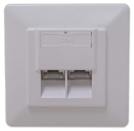 Zásuvka STP 2x RJ45 Cat6, duální svorkovnice, pod omítkuZásuvka STP 2x RJ45, duální svorkovnice Provedení: pod omítku.
