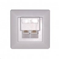 Zásuvka UTP 2x RJ45 Cat5E, duální svorkovnice, pod omítkuZásuvka UTP 2x RJ45, duální svorkovnice Provedení: pod omítku.