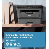 BROTHER multifunkce mono laserová DCP-L2600D - A4, 34ppm, 128MB, 1200x1200, USB, 250listů, DUPLEXLaserová tiskárna multifunkční, černobílá, A4, kopírování a skenování, rychlost černobílého tisku (ISO) 34 str./min., tiskové rozlišení 1200 x 1200 DPI, automatický duplex, displej, USB.