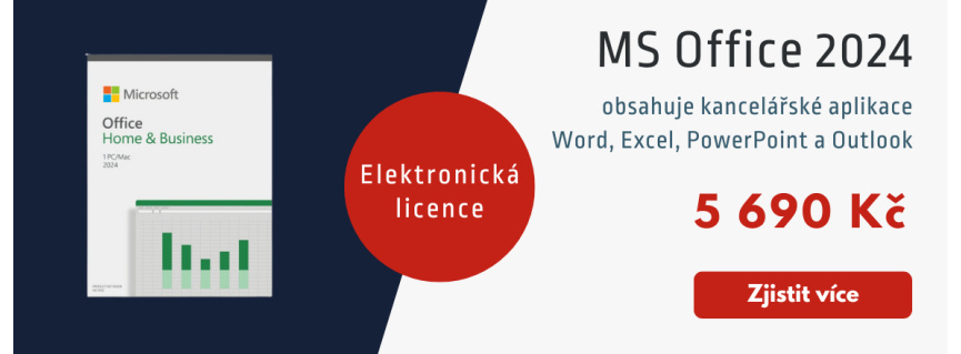 Office Home and Business 2024 CZ (pro podnikatele)Krabicová verze bez média. Kancelářský software určený pro 1 zařízení, přenositelná, obsahuje aplikace: Word, Excel, PowerPoint a Outlook, délka předplatného: bez omezení, trvalá licence, jazyková verze: všechny jazyky EU, způsob instalace: ke stažení (elektronicky), vhodné pro domácnosti a pro firmy, určeno pro PC, zeměpisné omezení: pouze v EU, Originální produkt MS (nejedná se o druhotnou licenci).