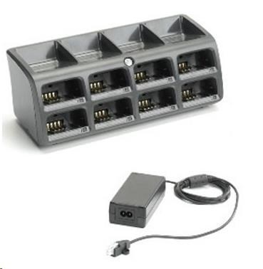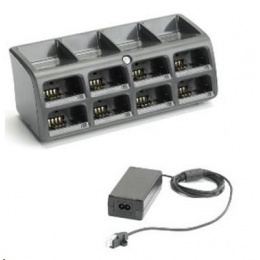 Charging station for 8 batteries, for standard and high capacity, incl. power supply. Please also order AC power cord (kabeurosw) separately, fits for Zebra RS507.