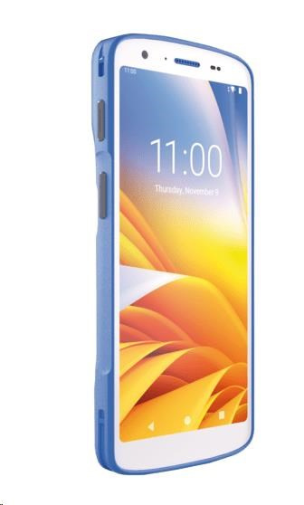 portable data collection device, 2D, imager (SE4720), screen size: 15,2cm (6''), resolution: 2160x1080 pixels, desinfectable housing, Camera (16MP), front camera (5MP), hot swappable, Push to talk, USB-C, Bluetooth (class 5.2), Wi-Fi (Wi-Fi 6E), audio, NFC, Micro SD-Slot, Qualcomm Hexa-Core, 2,1 GHz, RAM: 8 GB, Flash: 128 GB, Android, Google Mobile Services, protection class: IP65, IP68, white, blue.