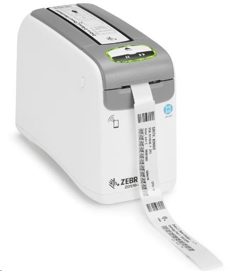 wristband printer, healthcare, direct thermal, 12 dots/mm (300 dpi), print width (max.): 30 mm, speed (max.): 102 mm/s, USB, Ethernet, ZPLII, XML, RAM: 256 MB, Flash: 512 MB, real time clock, incl.: power supply unit, power cable (EU, UK).