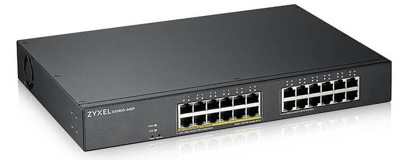 Zyxel GS1900-24EP 24-port Gigabit Smart Managed PoE Switch, 24x gigabit RJ45 (z toho 12x PoE), PoE budget 130WProvedení:Rack mounted 19"; Funkce:Web management/Smart switch; Technologie:Gigabit Ethernet 1000Mbps; Počet portů LAN:24; Počet portů LAN:24; Přenosová rychlost LAN (Mb/s):1000; Přenosová rychlost LAN (Mb/s):1000; Podporované standardy PoE:802.3af, 802.3at; Počet PoE Out portů:12; Počet PoE Out portů:12; Ventilátor; Maximální počet portů:24.