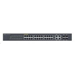 28portový Gigabit WebManaged switch: 24x Gigabit metalických portů + 4x Gigabit combo porty (metal/SFP), PoE 802.3at (High Power, 30W) - maximální zatížení PoE 375W, IPv6, 802.3az (Green), Layer 2-4 bezpečnostní nastavení, L2 Multicast, do 19" racku.