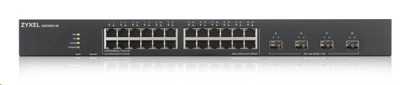 Zyxel XGS1935-28, 28 Port Lite-L3 Smart Managed Switch, 24x Gigabit Copper and 4x 10G SFP+, hybrid mode,Provedení:Rack mounted 19"; Funkce:Web management/Smart switch; Technologie:Gigabit Ethernet + 10 GbE porty; Počet portů LAN:24; Počet portů LAN:24; Přenosová rychlost LAN (Mb/s):1000; Přenosová rychlost LAN (Mb/s):1000; Počet SFP+ portů:4; Počet SFP+ portů:4; Maximální počet portů:24; Přenosová rychlost LAN (Mb/s):0; Maximální počet portů:24, 28.